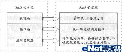 圖1 SaaS模式下各層的含義及實現(xiàn)