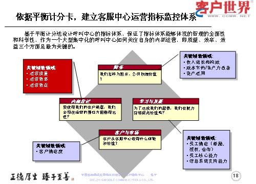 第一,是依據(jù)平衡計分卡原理,建立了客服中心運營指標(biāo)監(jiān)控體系,以實現(xiàn)呼叫中心的規(guī);(jīng)濟運營。
