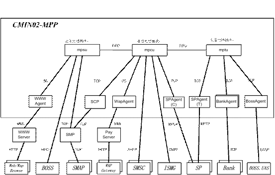 Provider)的交易請(qǐng)求,根據(jù)用戶的賬戶設(shè)置情況,與本地?cái)?shù)據(jù)庫(或銀行、或BOSS系統(tǒng))交互,完成對(duì)用戶支付賬戶的扣費(fèi)操作;業(yè)務(wù)受理部分MPSU:完成業(yè)務(wù)受理的功能,處理管理員、營業(yè)廳操作員、或用戶的業(yè)務(wù)管理請(qǐng)求,進(jìn)行相應(yīng)查詢、配置或計(jì)算,并返回結(jié)果;代理部分Agent,例如:WWWAgent,BankAgent等負(fù)責(zé)與各個(gè)外部實(shí)體的通信;另外,系統(tǒng)還應(yīng)有輔助模塊用來完成系統(tǒng)各進(jìn)程的守護(hù)、監(jiān)視、控制、以及系統(tǒng)性能數(shù)據(jù)的采集功能。