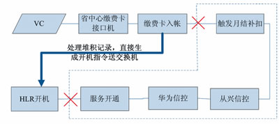 以圖4智能網(wǎng)充值開機流程為例,其經(jīng)歷的步驟繁多,特別是其中信控判斷邏輯復雜,程序處理耗時多,是引起月結用戶充值到賬但無法及時開機的關鍵環(huán)節(jié)。站在服務用戶的角度,最直接的應急方式便是提取已繳費入賬的號碼直接送HLR施工開機,對于存在欠費可能的用戶,其開機狀態(tài)在正常流程進行修復,但對于充值后仍欠費的用戶,其開機狀態(tài)將在經(jīng)歷過信控后自動被修改為停機。