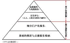 擁有4億多注冊(cè)用戶的騰訊,占有中國(guó)即時(shí)通信80%的市場(chǎng)份額,互聯(lián)網(wǎng)行業(yè)贏家通吃的定律顯露無疑,騰訊在海量用戶群基礎(chǔ)上開發(fā)的各種業(yè)務(wù)都在行業(yè)排名前列。當(dāng)電視服務(wù)的規(guī)模用戶群得以穩(wěn)固,基于用戶規(guī)模之上的多元化服務(wù)集成成為可能,對(duì)電視服務(wù)形成高度依賴的用戶群具備了價(jià)值挖掘的條件。人人交互、人機(jī)交互依托基礎(chǔ)的電視分眾門戶化應(yīng)用,形成了最初的用戶使用習(xí)慣;依托電視分眾門戶化集成的積累,建立用戶識(shí)別、用戶分析、收視分析、用戶數(shù)據(jù)交換的技術(shù)體系,用以支撐未來多元化娛樂與服務(wù)的開發(fā);贗PTV的交互能力,依托電視終端的易用性與舒適性,用戶價(jià)值、終端價(jià)值被充分挖掘,電視服務(wù)開始對(duì)其他媒介形式(含互聯(lián)網(wǎng))的用戶形成吸納。圍繞交互、商務(wù)需求的電子貨幣體系逐漸完善,電視進(jìn)入可有效運(yùn)營(yíng)、可便捷支付的良性的產(chǎn)業(yè)循環(huán),IPTV多元化業(yè)務(wù)之門打開。