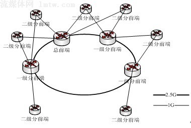某廣電現(xiàn)有網(wǎng)絡(luò)環(huán)境如下圖所示,總前端及其他一級分前端處于骨干光纖環(huán)網(wǎng)上,另有若干個二級分前端分別通過光纖雙上聯(lián)至骨干環(huán)網(wǎng)上的總前端或一級分前端中的兩個物理節(jié)點。所有物理節(jié)點均帶有一定數(shù)量的終端用戶。