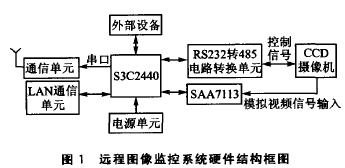 在嵌入式領(lǐng)域,ARM9系列微處理器在高性能和低功耗方面提供了最佳的性能,因此選用ARM9嵌入式處理器S3C2440設(shè)計實現(xiàn)了一個遠(yuǎn)程圖像光線監(jiān)控系統(tǒng)通過這個系統(tǒng),可以遠(yuǎn)在千里之外控制一個攝像機進行圖像采集并回傳。如果這個攝像機有一個485接口的云臺,還可以通過互聯(lián)網(wǎng)遠(yuǎn)程控制攝像機的取景角度、鏡頭拉伸、聚焦等功能.