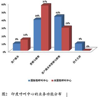 印度的呼叫中心可分為兩類:一類面向國際市場,另一類服務(wù)本國市場。如班加羅爾等6個城市的60家呼叫中心中,74%(44家)專門服務(wù)于國際市場,26%(16家)服務(wù)于本國市場。
