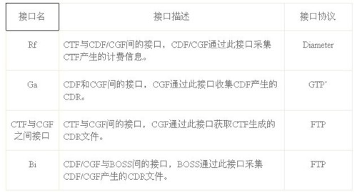 IMS離線計費相關接口及其對應的協(xié)議要求參見表1。