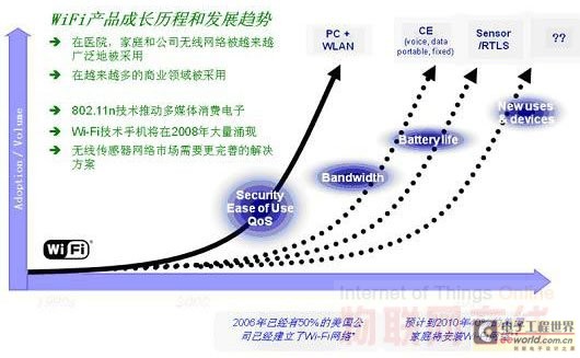 將Wi-Fi用于WSN網(wǎng)絡(luò),確實是個不錯的主意。因為它能夠享受到正在被大規(guī)模部署的Wi-Fi網(wǎng)絡(luò)所帶來的成熟的技術(shù)、各種層出不窮的Wi-Fi設(shè)備、既有的網(wǎng)絡(luò)設(shè)施、架構(gòu)支持、豐富的網(wǎng)絡(luò)知識,另外還有快速安裝和減少了學(xué)習(xí)周期和與其他協(xié)議互操作而帶來的各種麻煩,加快開發(fā)周期。