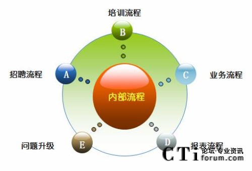 呼叫中心的流程按其用途和作用點不,又分為內(nèi)部流程和外部流程兩部分,外部流程主要是指和相關(guān)部門間的流程,而內(nèi)部流程又包括有: