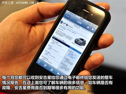 另外,隨著現(xiàn)在手機(jī)或者平板電腦的逐步興起,安吉星公司已經(jīng)開發(fā)一套無(wú)線端控制程序,您可以在您的手機(jī)或者平板電腦上安裝一個(gè)程序,之后發(fā)送一個(gè)指令短信就可以完成原來(lái)需要在車內(nèi)通過(guò)人工方式進(jìn)行的服務(wù)工作。并且未來(lái),安吉星也會(huì)增加一些娛樂(lè)功能,如訂票或者訂餐業(yè)務(wù)。不過(guò)陪同人員也表示:“公司的核心還是以提供車輛安全保證服務(wù),更多增值服務(wù)只要我們想做隨時(shí)可以推出。而為車輛提供安全保證這項(xiàng)則是我們的競(jìng)爭(zhēng)對(duì)手還沒(méi)有做到的,因此我們要先做好自己的根本工作!