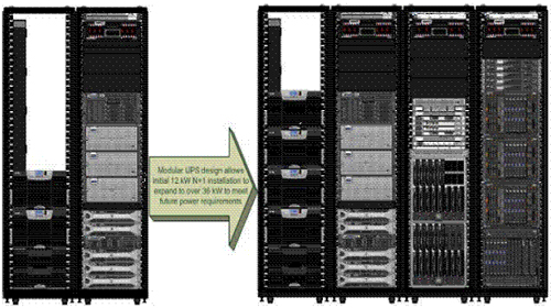 模塊化UPS設(shè)計允許最初的12kW N+1架構(gòu)設(shè)備擴展至36kW以上,以滿足未來的電源要求。