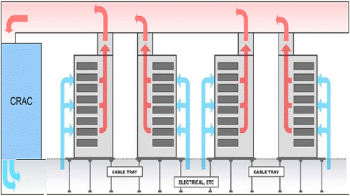 現(xiàn)在,大多數(shù)企業(yè)都在其服務(wù)器所在樓層的周圍部署機房空調(diào)(CRAC)裝置來解決數(shù)據(jù)中心產(chǎn)生的熱量。許多公司還采用“熱通道-冷通道”式硬件配置,針對指定的服務(wù)器機柜只配置了熱風排出或者冷風吸入。這就產(chǎn)生了對流循環(huán),從而形成冷卻的連續(xù)氣流。然而,雖然這類技術(shù)基本足以應對傳統(tǒng)數(shù)據(jù)中心的需求,但卻往往無法處理云基礎(chǔ)架構(gòu)產(chǎn)生的巨大熱量。因此,公共和私有云環(huán)境通常需要更先進、更強大的冷卻技術(shù)。