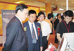 常小兵副總經(jīng)理(左一)在參觀展區(qū)。