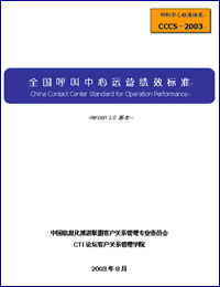 《全國(guó)呼叫中心運(yùn)營(yíng)績(jī)效標(biāo)準(zhǔn)》(China Contact Center Standard for Operation Performance,簡(jiǎn)稱"CCCS-OP-2003標(biāo)準(zhǔn)"),是由CTI論壇客戶關(guān)系管理學(xué)院負(fù)責(zé)策劃和起草,并聯(lián)合該領(lǐng)域內(nèi)具有代表性的客戶服務(wù)提供商、運(yùn)營(yíng)商一起同心協(xié)力,站在行業(yè)發(fā)展的最前沿,共同創(chuàng)建的客戶服務(wù)及呼叫中心行業(yè)運(yùn)營(yíng)標(biāo)準(zhǔn),并最終由信息產(chǎn)業(yè)部中國(guó)信息化推進(jìn)聯(lián)盟客戶關(guān)系管理專業(yè)委員會(huì)發(fā)布實(shí)施的行業(yè)標(biāo)準(zhǔn)。該標(biāo)準(zhǔn)填補(bǔ)了國(guó)內(nèi)在該領(lǐng)域的一項(xiàng)空白,并將帶動(dòng)整個(gè)行業(yè)不斷地向前發(fā)展。