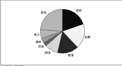圖2 2008年上半年中國(guó)行業(yè)電信應(yīng)用市場(chǎng)行業(yè)分布情況
