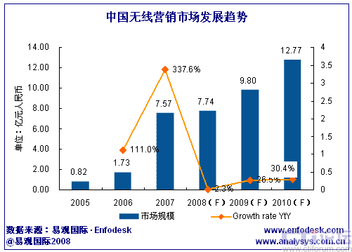 易觀:2008年中國(guó)無(wú)線營(yíng)銷市場(chǎng)規(guī)模將達(dá)7.74億元