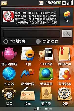 據(jù)介紹,在Ophone手機(jī)最終版主界面中嵌入了手機(jī)搜索欄,實現(xiàn)對手機(jī)內(nèi)容的一鍵搜索,同時它支持手機(jī)內(nèi)多種數(shù)據(jù)及互聯(lián)網(wǎng)的全面搜索。