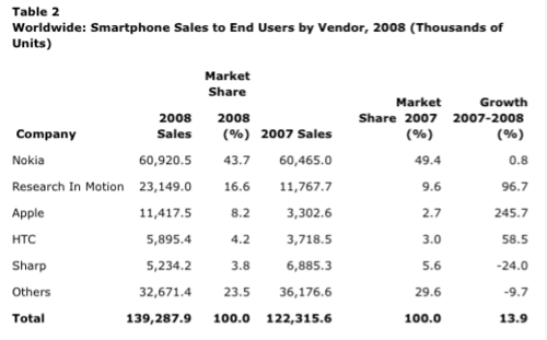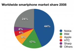 2007年6月29日,iPhone如期發(fā)布,其強(qiáng)勢(shì)的綁定分成模式曾遭到了來(lái)自各路分析師的質(zhì)疑,然而這些都沒(méi)有擋住它的熱銷(xiāo), 市場(chǎng)調(diào)研機(jī)構(gòu)Gartner報(bào)告顯示,截至2008年底,蘋(píng)果在全球范圍內(nèi)共計(jì)銷(xiāo)售了約1200萬(wàn)部iPhone ,整年銷(xiāo)量增長(zhǎng)245%,是全球智能機(jī)銷(xiāo)量增幅最大的手機(jī)。
