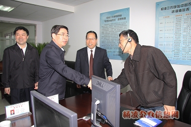 10月29日,陜西省長(zhǎng)袁純清,副省長(zhǎng)、楊凌示范區(qū)管委會(huì)主任姚引良視察呼叫中心,看望慰問(wèn)坐席專(zhuān)家。