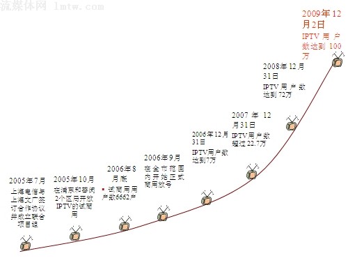 上海電信IPTV用戶12月3日突破百萬大關(guān),比原本預(yù)計(jì)的發(fā)展時(shí)間提前了近一個(gè)月。從2006年10月正式商用,發(fā)展到2009年12月,上海已經(jīng)成為全球最大的IPTV本地網(wǎng)并且是唯一用戶規(guī)模過百萬的城市。