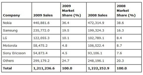 2009年各手機(jī)品牌銷(xiāo)售情況