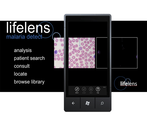 Lifelens是一個(gè)新推出的智能手機(jī)應(yīng)用,可以讓用戶對(duì)血樣進(jìn)行拍照,然后確定是否已經(jīng)感染瘧疾。該應(yīng)用目前僅支持Windows Phone 7系統(tǒng),利用了手機(jī)的高分辨率成像傳感器和一個(gè)微型球透鏡配件。