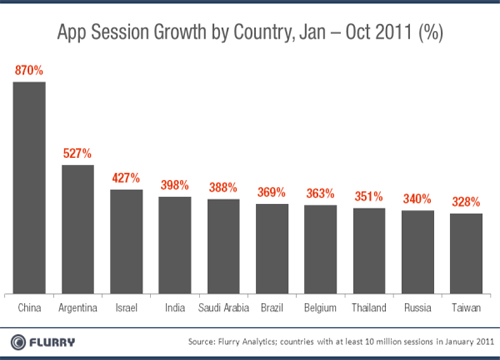 北京時(shí)間11月3日消息,據(jù)國(guó)外媒體報(bào)道,日前,移動(dòng)應(yīng)用分析網(wǎng)站Flurry發(fā)表分析文章稱(chēng),iOS和Android移動(dòng)應(yīng)用的下載量不斷增加,而中國(guó)的移動(dòng)應(yīng)用下載量和新應(yīng)用需求更是迅猛增長(zhǎng),中國(guó)已經(jīng)一躍成為全球第二大移動(dòng)應(yīng)用市場(chǎng),全球應(yīng)用開(kāi)發(fā)者都不可忽視中國(guó)市場(chǎng)。