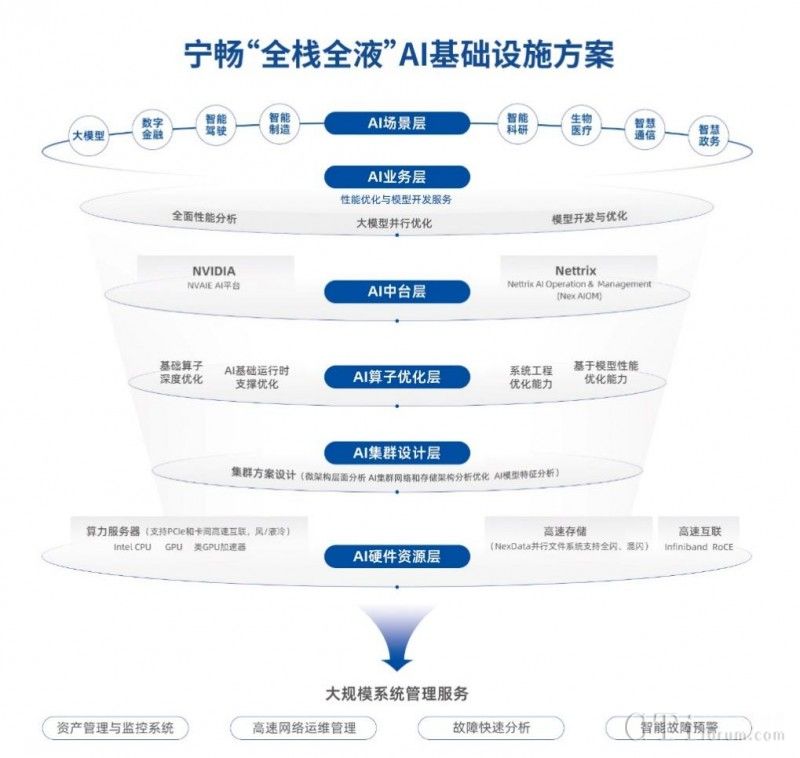 從實際應(yīng)用場景來看,寧暢“全棧全液”AI基礎(chǔ)設(shè)施方案可支持大模型落地所需的計算、存儲、網(wǎng)絡(luò)、建設(shè)、管理、應(yīng)用及液冷等全方位需求,能夠為智算中心的構(gòu)建、以及大模型落地過程中面臨的問題,提供強有力的支持,打造企業(yè)/行業(yè)級智算中心標(biāo)準(zhǔn)方案。