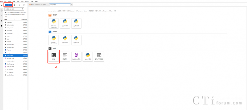 參加本次活動(dòng),用戶(hù)只需四步就可開(kāi)啟AI作圖之旅。第一步,在商城選擇stable-diffusion-xl-1.0 商品后點(diǎn)擊“立即使用”,并在后續(xù)出現(xiàn)的notebook頁(yè)面點(diǎn)擊左上角“+”,以此進(jìn)入終端頁(yè)面。