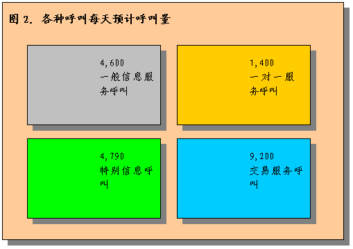 。。為了對此進行說明,假設(shè)呼叫中心每天可預(yù)計處理大約20000個呼叫。這包含了上文所述的四種呼叫。將有50%以上呼叫中心接到的呼叫是關(guān)于基本服務(wù)請求或性質(zhì)請求。這種預(yù)計呼叫量不包括預(yù)計呼叫增長量,因為沒有以往信息不能估計出增長情況。而在呼叫中心運行初期通常是沒有這些信息的。應(yīng)在執(zhí)行計劃中進行增長假設(shè)分析,保證系統(tǒng)容量在執(zhí)行服務(wù)市場計劃后可以應(yīng)付相應(yīng)的增長水平。