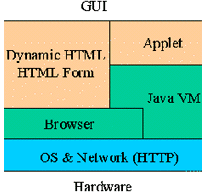 Dynamic HTML可以很好地進(jìn)行公開信息的發(fā)布,通過HTML Form機(jī)制可以從瀏覽器中得到用戶檢索等簡單操作的輸入信息。對于無須身份認(rèn)證、訪問控制的內(nèi)容,在Web Server上可以使用通常的CGI技術(shù)獲取用戶的請求、查詢條件,通過Web Connector還可以使用應(yīng)用服務(wù)其提供的后臺服務(wù),結(jié)果使用HTML方式描述,并可直接回送到客戶端的瀏覽器。如果進(jìn)一步使用Applet技術(shù),還可以在客戶端實(shí)現(xiàn)更為友好的交互式顯示模式。無論是使用DHTML技術(shù)還是HTML Form加上Server方擴(kuò)展(如CGI, ISAPI, NSAPI, fastCGI和servlet等)。它們適合處理的業(yè)務(wù)都是每次請求/應(yīng)答基本獨(dú)立,相互無關(guān)聯(lián)的情況。對于一些更為復(fù)雜的應(yīng)用,要求前后操作具有相關(guān)性,客戶與服務(wù)器端各自保持狀態(tài)的變化且狀態(tài)是相關(guān)的。在這種情形之下,更好的解決方案是將客戶端的所有操作保持在一個(gè)Applet中完成,由Applet直接與Web Server交互數(shù)據(jù)來完成請求/應(yīng)答數(shù)據(jù)的交互。