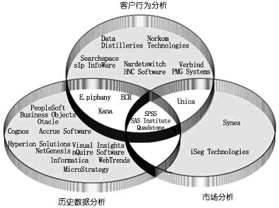 這一市場(chǎng)的供應(yīng)商目前主要分為兩大陣營(yíng):一類著眼于客戶行為傾向分析;另一類著眼于對(duì)客戶價(jià)值進(jìn)行評(píng)估。前者主要注重了解客戶的喜好,而后者則著重關(guān)注客戶對(duì)企業(yè)的潛在收益。