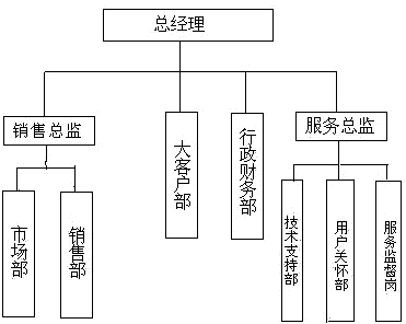 經(jīng)過討論,結(jié)合公司的實際情況,Z公司迅速采納了項目組提出的建議,并在CRM項目啟動大會上宣布項目開始實施。而且調(diào)整了組織結(jié)構(gòu),新的結(jié)構(gòu)如圖2所示。整個CRM項目分兩個階段實施,第一階段實現(xiàn)銷售業(yè)務(wù)的跟蹤監(jiān)控,以及部分市場信息的共享傳遞,第二階段再將公司的市場管理、服務(wù)管理、用戶關(guān)懷等業(yè)務(wù)流程納入整個系統(tǒng)。