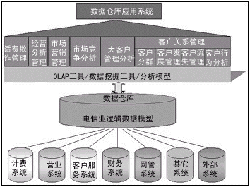 圖1 電信行業(yè)數(shù)據(jù)倉庫系統(tǒng)解決方案體系結構圖