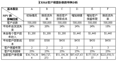 顯然,流失率是影響NPV的最重要因素,良好的客戶關(guān)系或客戶保留將創(chuàng)造更大的利潤(rùn)。從短期和長(zhǎng)期來(lái)說(shuō),"以客戶保留為中心"是回報(bào)最豐厚的CRM活動(dòng)。