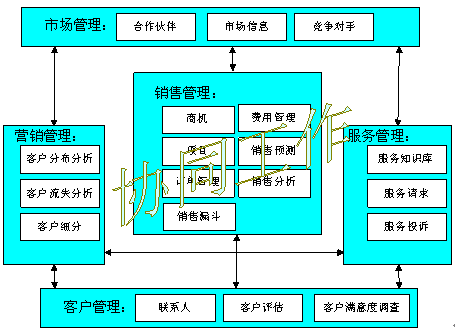 以客戶管理、銷(xiāo)售、服務(wù)、營(yíng)銷(xiāo)、市場(chǎng)之間的協(xié)同工作(CooperativeWorking)為基礎(chǔ)目標(biāo);