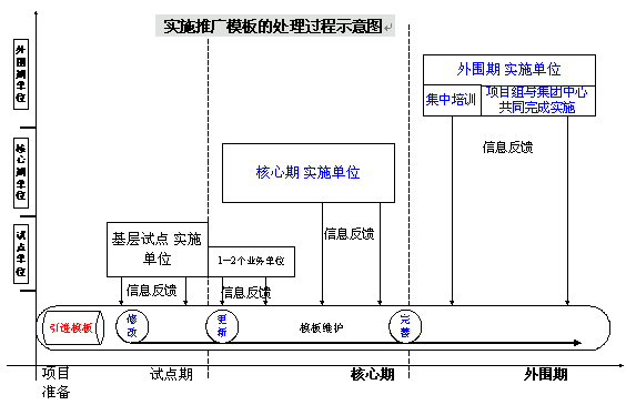 。。在外圍期推廣期,雙方項(xiàng)目組將確認(rèn)形成的優(yōu)化模版已達(dá)到很高的通用性,適合各個(gè)實(shí)施單元。配合培訓(xùn)工作,雙方項(xiàng)目組會(huì)設(shè)計(jì)出一套特定的課程,經(jīng)過培訓(xùn)后,使各地實(shí)施單元能夠在項(xiàng)目實(shí)施小組的支持下,利用優(yōu)化模板迅速實(shí)施。
