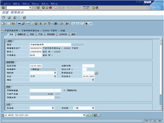商機(jī)管理可以通過商機(jī)菜單選項(xiàng)實(shí)現(xiàn),包括團(tuán)隊(duì)成員、合作伙伴關(guān)系、競爭對手、活動、訂單分析等子選項(xiàng)。商機(jī)概況中包括一個(gè)商機(jī)潛在價(jià)值的字段?梢允褂妙A(yù)定義的公式(公式可以自定義)自動計(jì)算。