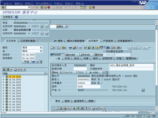 客戶服務(wù)功能包括記錄抱怨相關(guān)的事件信息或錯(cuò)誤描述概況。資源規(guī)劃工具允許用戶察看事件相關(guān)的員工和資源的可用性,F(xiàn)場服務(wù)功能可以通過與可以使用WAP的設(shè)備、Palm、Pilot、PAQ