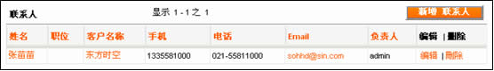 比起Salesforce,XToolsCRM新建聯(lián)系人的界面友好得多,基本上沒(méi)有界面的切換,整個(gè)過(guò)程完全在客戶試圖內(nèi)實(shí)現(xiàn),Ajax技術(shù)的應(yīng)用發(fā)揮了很好的作用。另外,XToolsCRM聯(lián)系人的信息顯示方式很特殊,一改常見(jiàn)的水平列表、以單元塊的方式并列展示,多聯(lián)系人時(shí)視覺(jué)效果也很好。