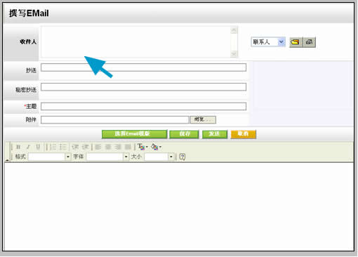 值得推薦的是它的Email字段,因?yàn)橐卓蛢?nèi)嵌了Email服務(wù)器,點(diǎn)擊聯(lián)系人email后直接調(diào)用易客CRM自身的撰寫(xiě)新郵件界面,較之前面兩種CRM的方式,與郵件系統(tǒng)契合更加緊密。不足之處在于,在彈出的撰寫(xiě)郵件窗口中收件人部分并沒(méi)有自動(dòng)填寫(xiě)該聯(lián)系人,而是以不可編輯的方式出現(xiàn),推測(cè)可能和試用版有關(guān)。如下圖: