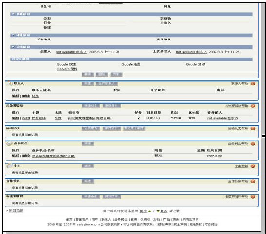這種模式較之Salesforce界面切換式的操作,給人的感覺(jué)就像是液晶電視和CRT電視的感覺(jué),差著技術(shù)時(shí)代!在Salesforce正式面向中國(guó)市場(chǎng)以前,筆者了解過(guò)Salesforce的英文版本,Ajax的應(yīng)用也是比較多的,但是為何其中文版本的人機(jī)交互卻使用了兩三千年的老技術(shù)?這個(gè)問(wèn)題也許只有Salesforce才可以回答。不過(guò)顯然,在這個(gè)項(xiàng)目的對(duì)決中,XToolsCRM大勝Salesforce。