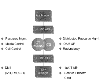 CT硬件的重要標準是H.100規(guī)格,它承繼了SCSA和MVIP的研究,為媒體資源卡定義了一個標準的TDM總線接口,以使不同供應商的媒體資源卡能集成到同一臺主機中。