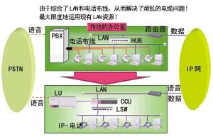 對(duì)于全部采用IP PBX的企業(yè),在完成數(shù)據(jù)網(wǎng)布線(xiàn)的同時(shí),也等于完成了電話(huà)網(wǎng)的布線(xiàn),可大大節(jié)省布線(xiàn)成本,從而解決了繁雜的電纜問(wèn)題(圖一)。