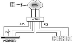圖2 Centrex方式IP電話網(wǎng)關(guān)連接示意圖