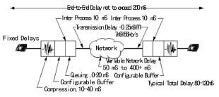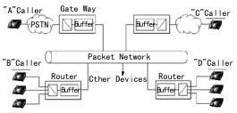 網(wǎng)關(guān)或路由器內(nèi)部的語音編碼器對帶內(nèi)音頻信號進行打包和重組。這些器件對確認接收和有效數(shù)據(jù)包接收的順序進行糾錯檢查。一旦發(fā)現(xiàn)錯誤,將命令重發(fā),而重發(fā)相關(guān)數(shù)據(jù)包則不可避免地造成傳輸上的延時。網(wǎng)關(guān)或路由器上的緩存器