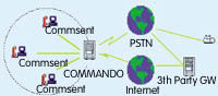COMMANDO系統(tǒng)提供與其他同類(lèi)系統(tǒng)之間的互連互通功能,通過(guò)選擇不同的模塊可以輕松實(shí)現(xiàn)與CISCO、CLARENT、COMMSENT、WHEREVER等VoIP系統(tǒng)之間的無(wú)縫銜接。