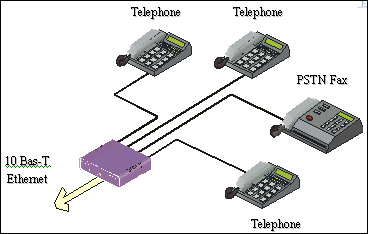 以太網(wǎng)相連,可支持兩個標準的電話終端進行呼叫。