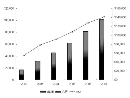 中國的運營商,包括中國電信、中國網(wǎng)通、中國聯(lián)通,都已經(jīng)提供VoIP業(yè)務,與此同時,中國寬帶用戶預計將在2004年底達2000萬以上,成為全球第二大寬帶市場。