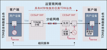 圖1:通過分組交換網(wǎng)絡(luò)實(shí)現(xiàn)的電路仿真業(yè)務(wù)。