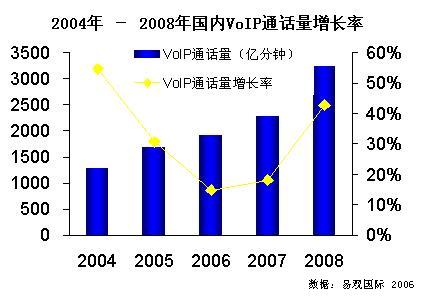 新華美消息:易觀國際《中國 VOIP 市場監(jiān)管政策趨勢預(yù)測專題報(bào)告2006》中指出,VoIP 是大勢所趨,政策壓制的原因是開放的條件不成熟。一切政策的制定都要遵從一個(gè)大前提,即保障公開競爭、維護(hù)國家和用戶利益、防止重復(fù)建設(shè)。2004年-2008年國內(nèi) VoIP 通話量增長率圖下載: