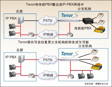 能使H.323和SIP終端得以繼續(xù)適用、還能在IP網(wǎng)絡(luò)中提供緊急呼叫(E911)服務(wù),這些性能使IP網(wǎng)關(guān)對運營商更具吸引力。寬騰公司從Tenor產(chǎn)品開始瞄準(zhǔn)了企業(yè)用戶。
